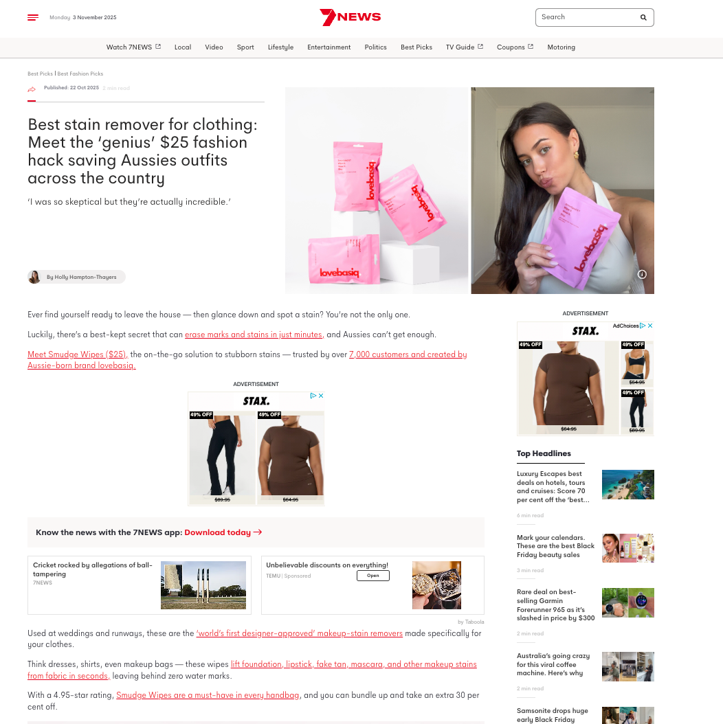 Smudge Wipes - specifically formulated to fight makeup stains — fast. A powerful little wipe that saves your outfit and the moment.